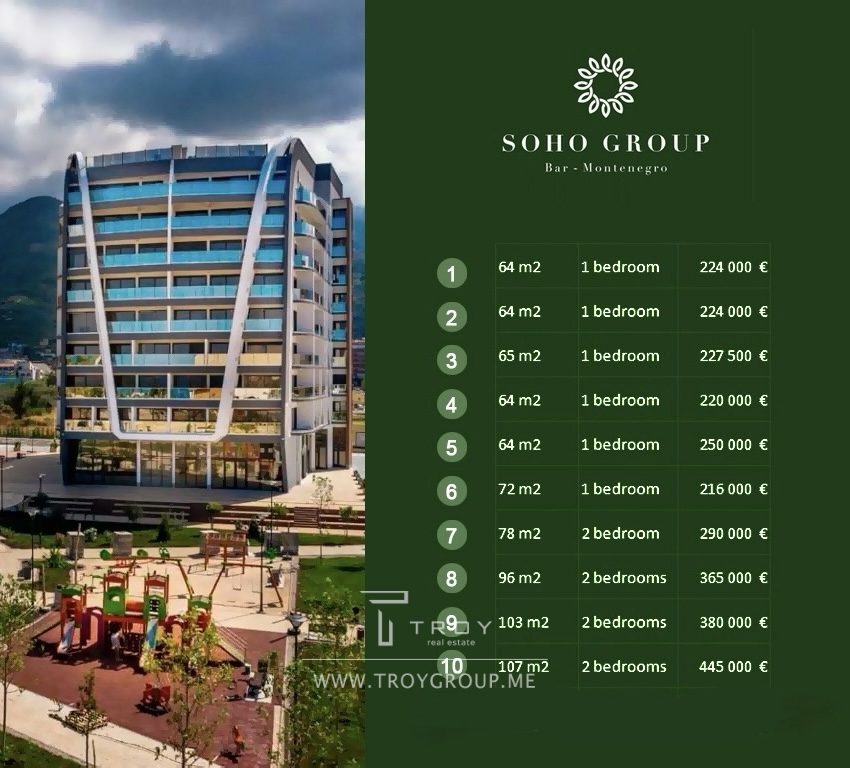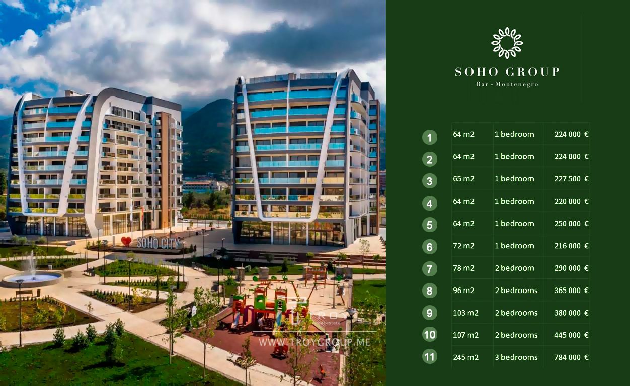 Продаются квартиры различной площади в престижном жилом комплексе Soho City, расположенном в самом сердце Бара.