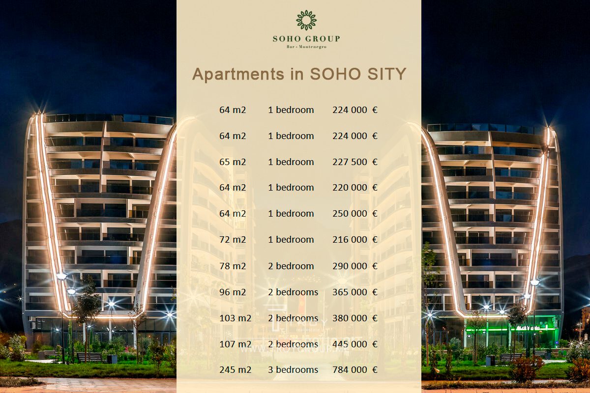Apartments of various sizes in the prestigious residential complex Soho City.