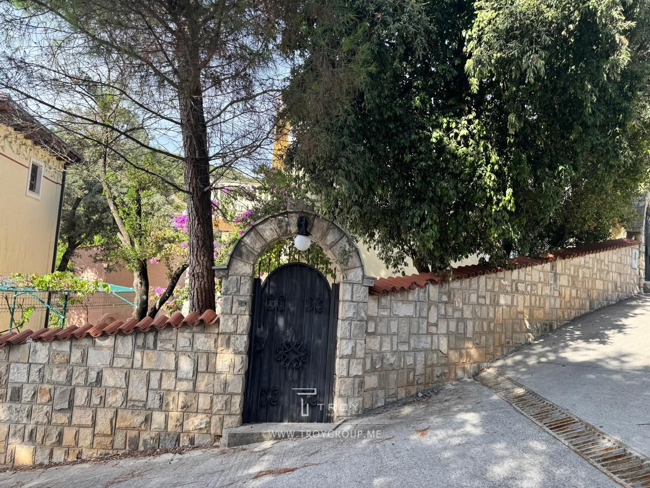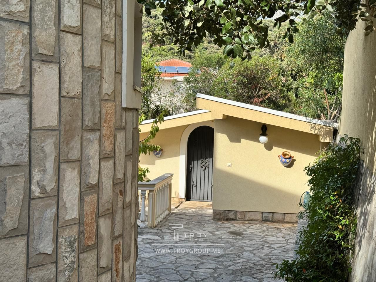 На территории растут деревья — оливковые, мандариновые, вишнёвые, виноград, декоративные растения. Рядом с домом парковка на 2–4 автомобиля. До уютного небольшого пляжа всего 30 метров.