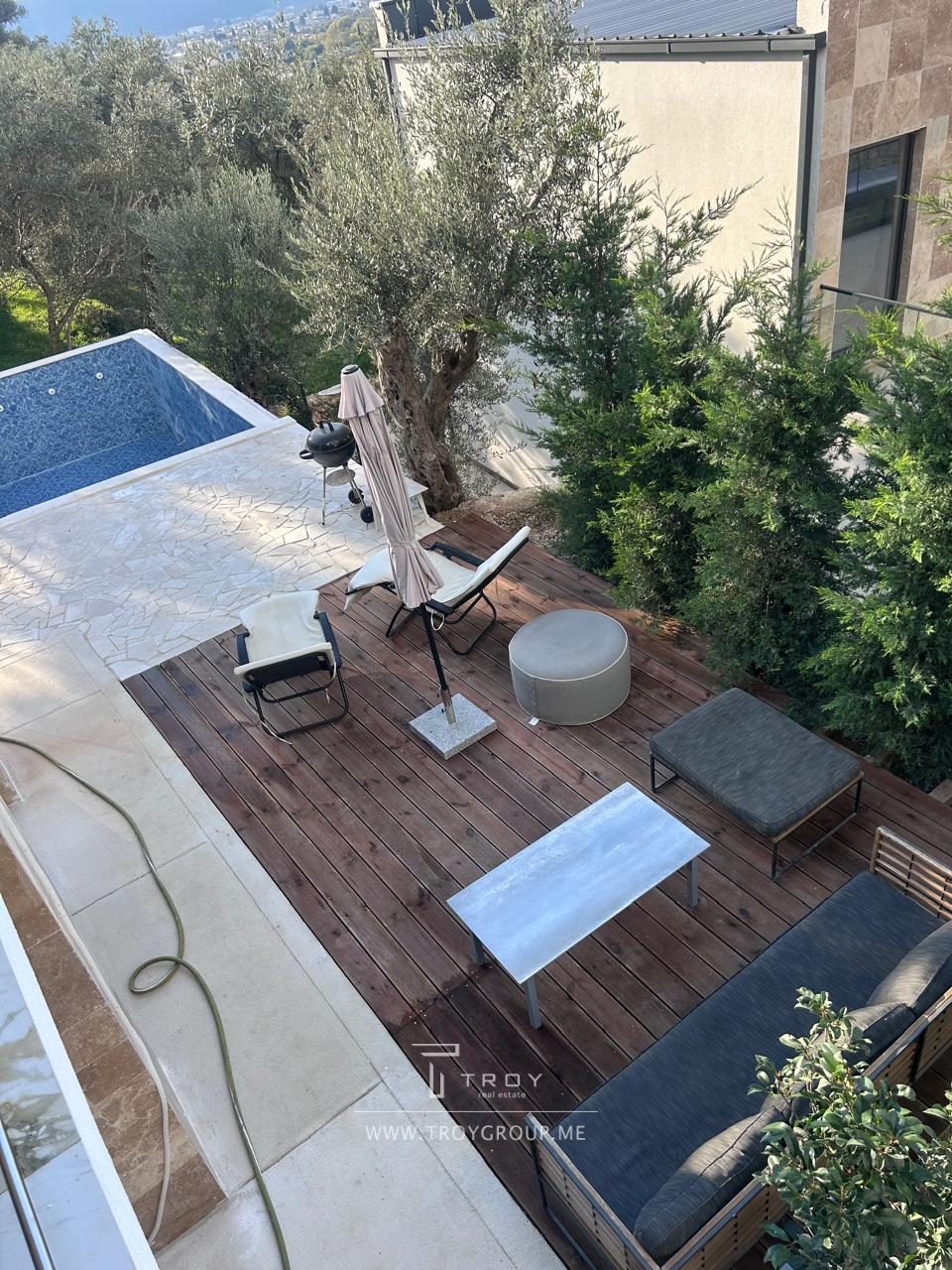 Продается современный дом площадью 160 м2 в Bar, Bartula. В доме 2 этажа, три спальни, гостиная, 2 санузла. Участок 360 м2 с оливковыми деревьями. Дом находится на завершающей стадии строительства. Отличная возможность отделать интерьер по своему вкусу. Отличное расположение дома! Вид на весь город, море и горы. К дому ведет асфальтированная дорога. Бойлер 80 литров, отопление на 1 этаже водяными радиаторами, на 2 этаже кондиционеры, септик. Бассейн.