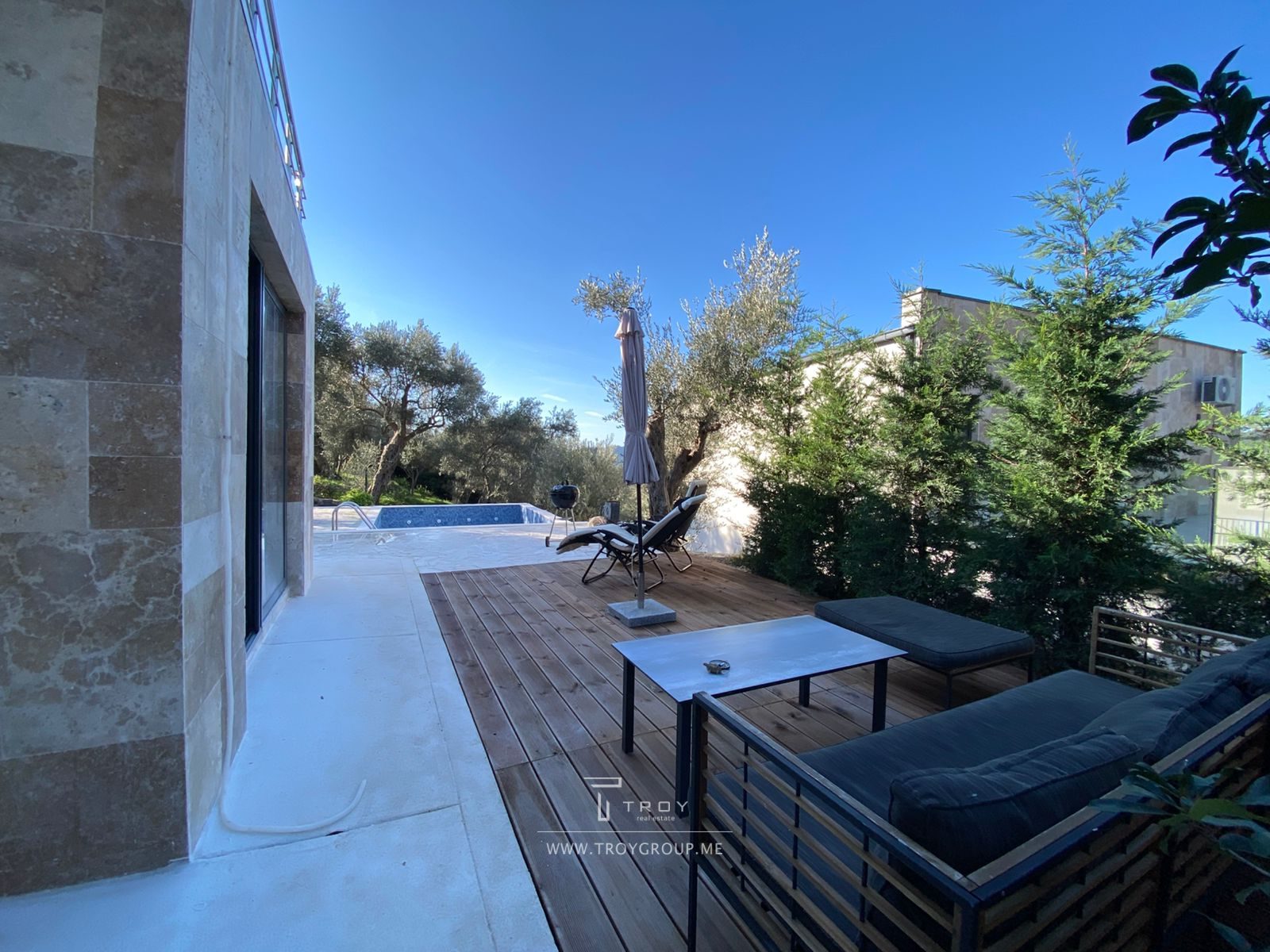 Modern house in Bar, Bartula, with a well-maintained plot and a swimming pool.
