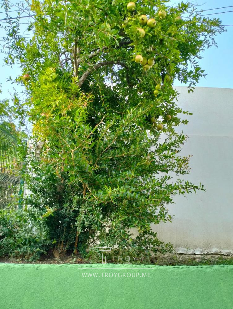 Дом занимает 101 м² и расположен на огороженном участке площадью 200 м², окруженном элегантным зеленым металлическим забором с двумя въездными воротами со двора и одной внутренней садовой калиткой. Каждая этаж занимает 50,46 м² и предлагает потрясающий вид на море.