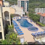 Квартира с отдельной спальней в Becici, Budva с видом на море и бассейн.