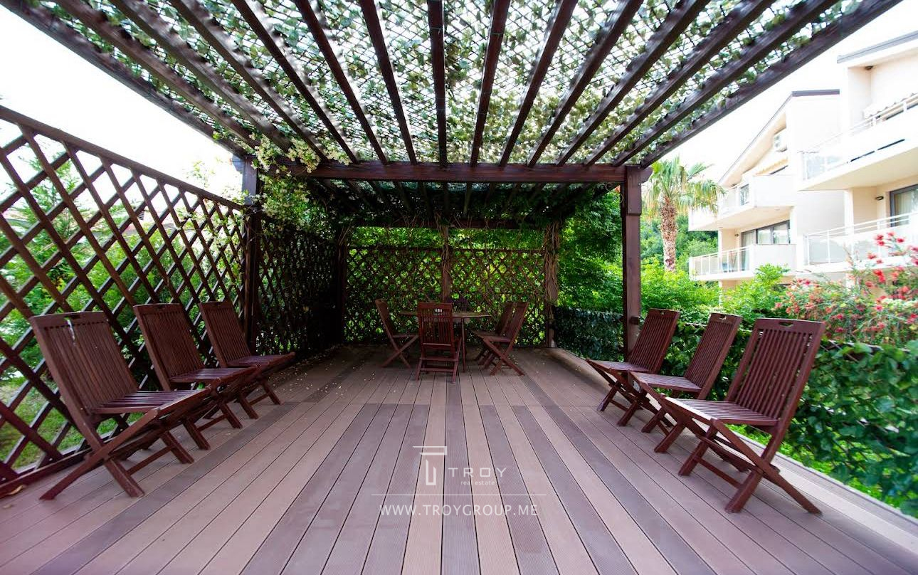 * Терраса оборудована двумя солнцезащитными маркизами (изготовлены на заказ) и мебелью для отдыха.