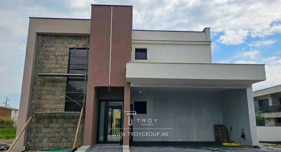 Дом построен по современному проекту, сочетая функциональность и эстетичный дизайн.