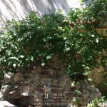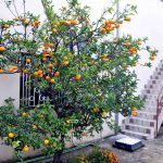 На участке растут плодовые деревья: 2 мандарина, 1 хурма, 1 слива, 1 миндаль и 1 инжир. Также есть цветы и лавр. 13 кустов винограда создают живой навес над столом и частью террасы.