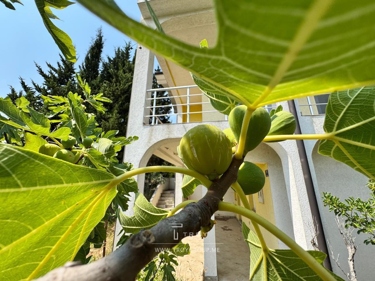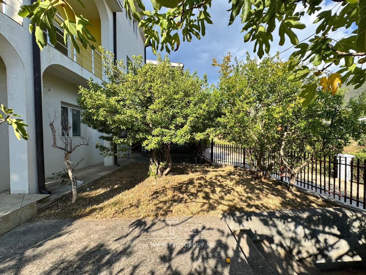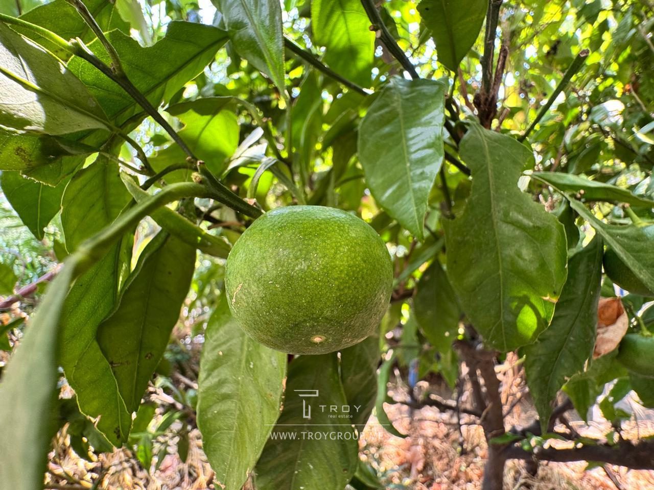 На территории сад с плодовыми деревьями и растениями: виноград, инжир, гранат, мандарины, иглица.
