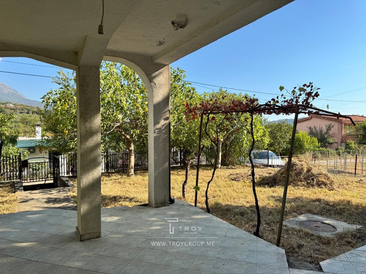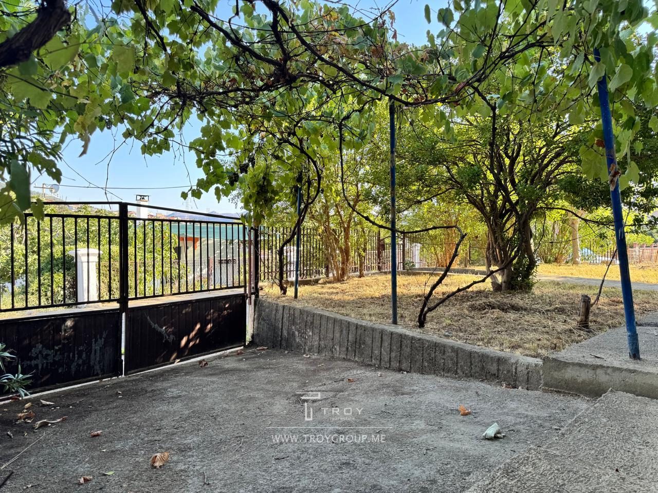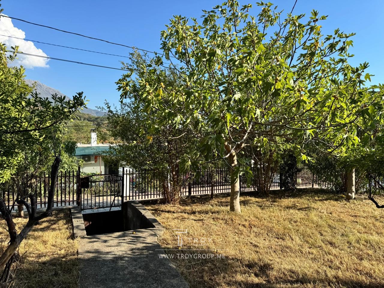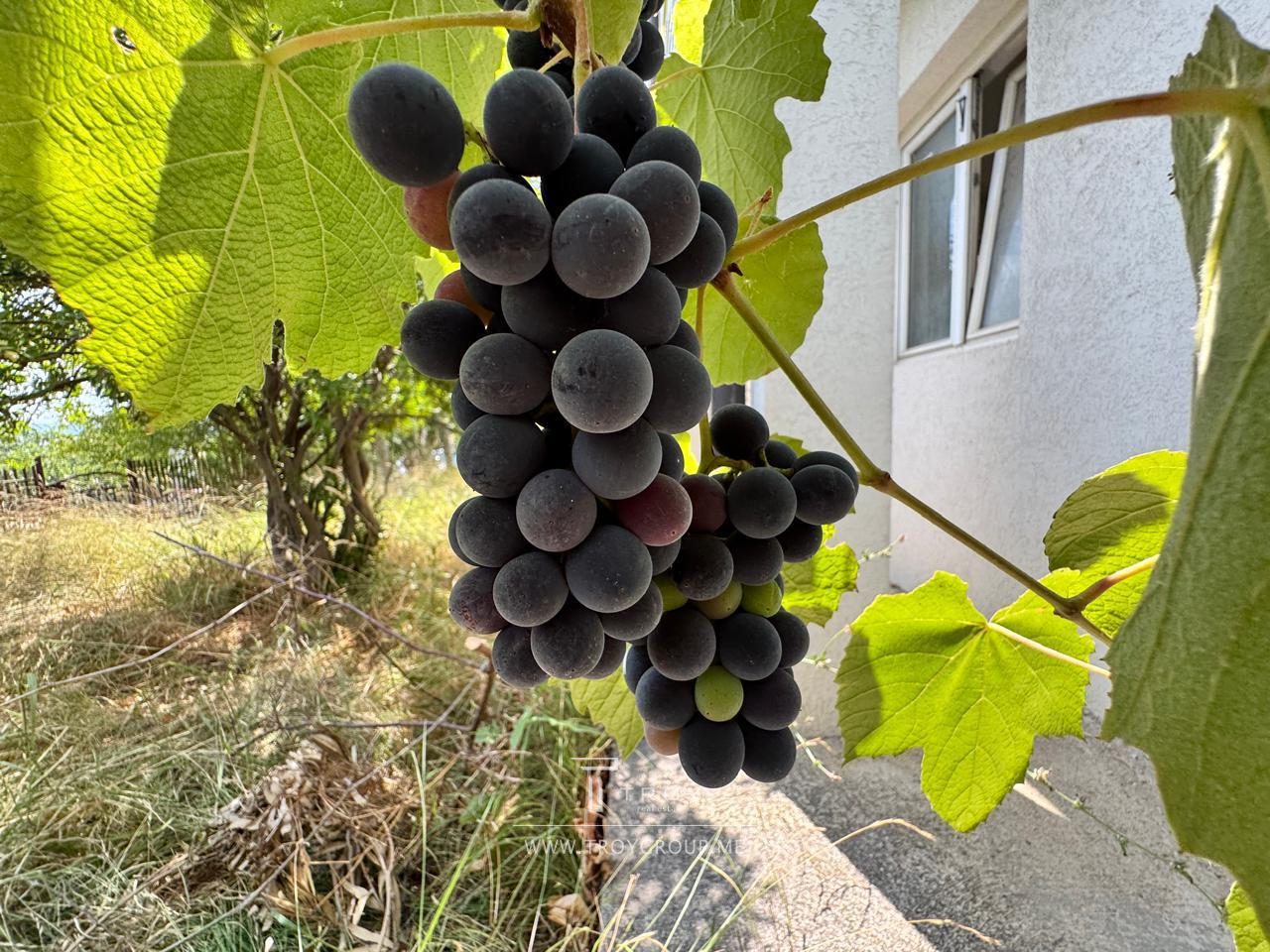 На территории сад с плодовыми деревьями и растениями: виноград, инжир, гранат, мандарины, иглица.