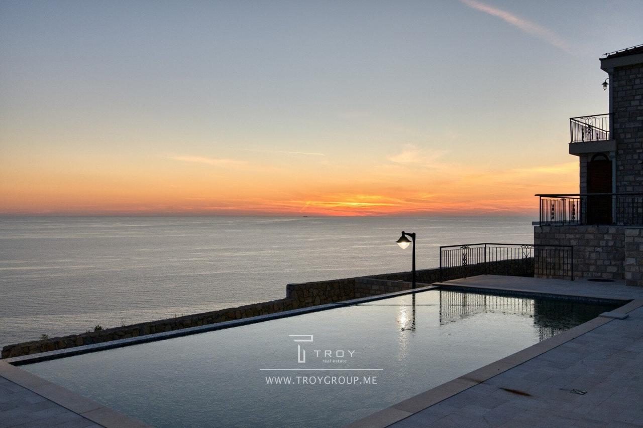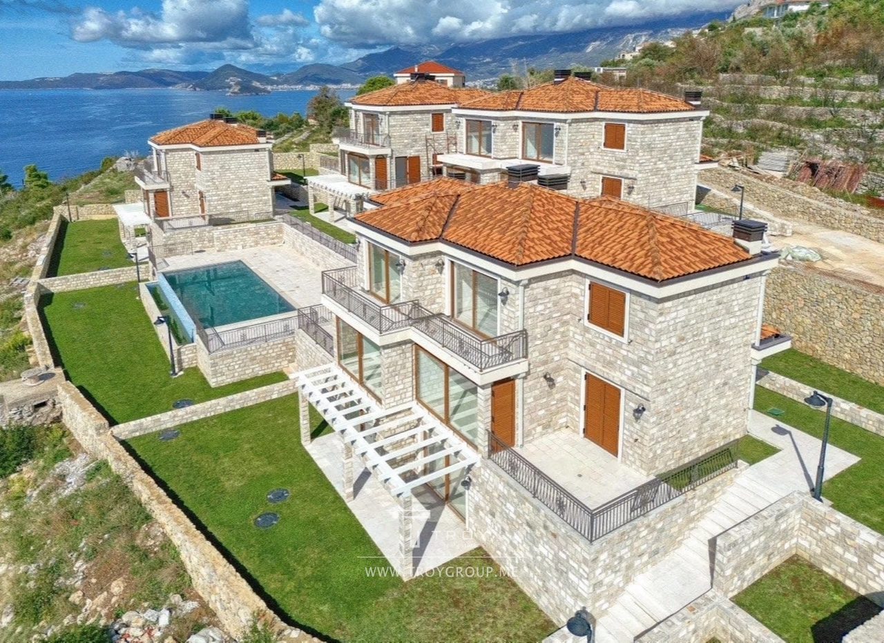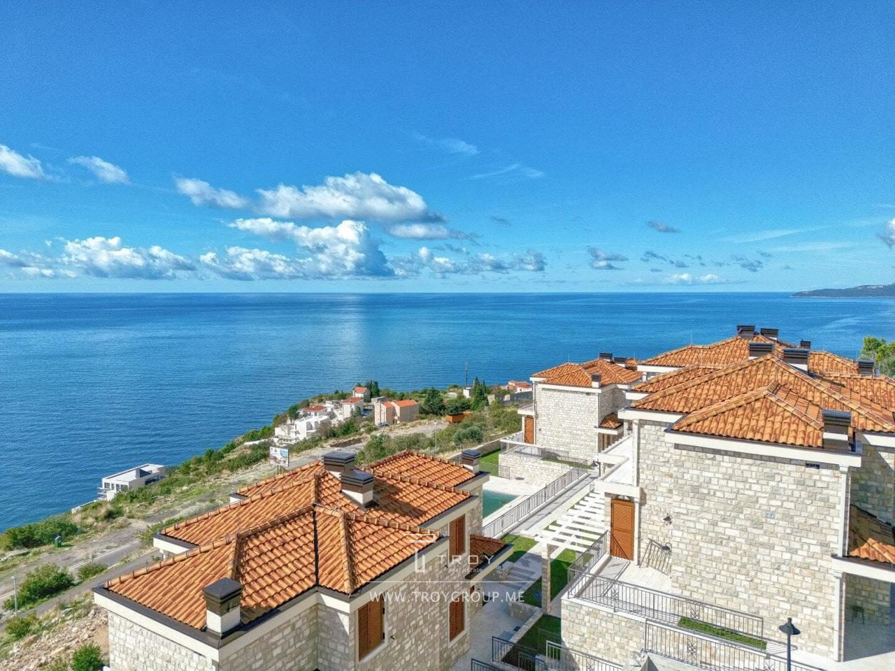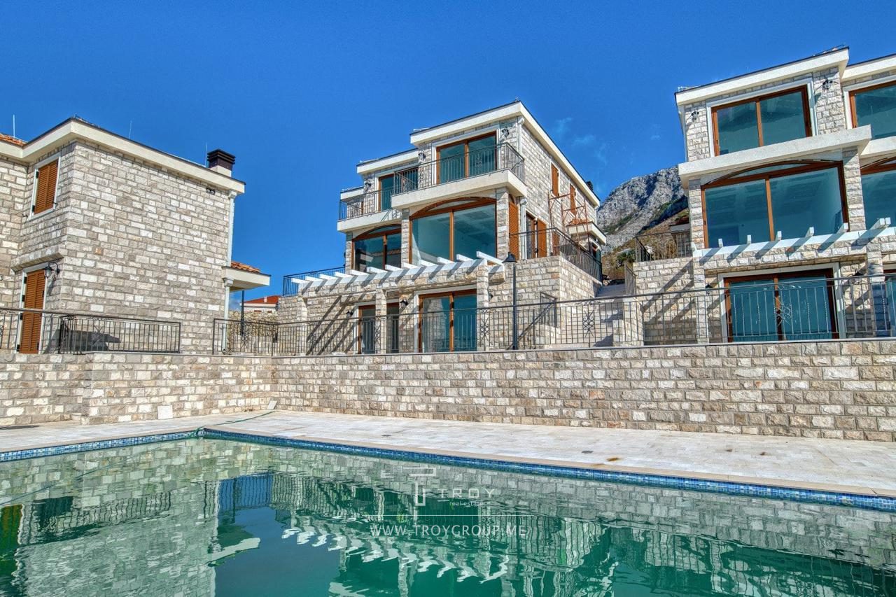 Таунхаус в комплексе с бассейном с панорамным видом на море в Rezevici (Budva).