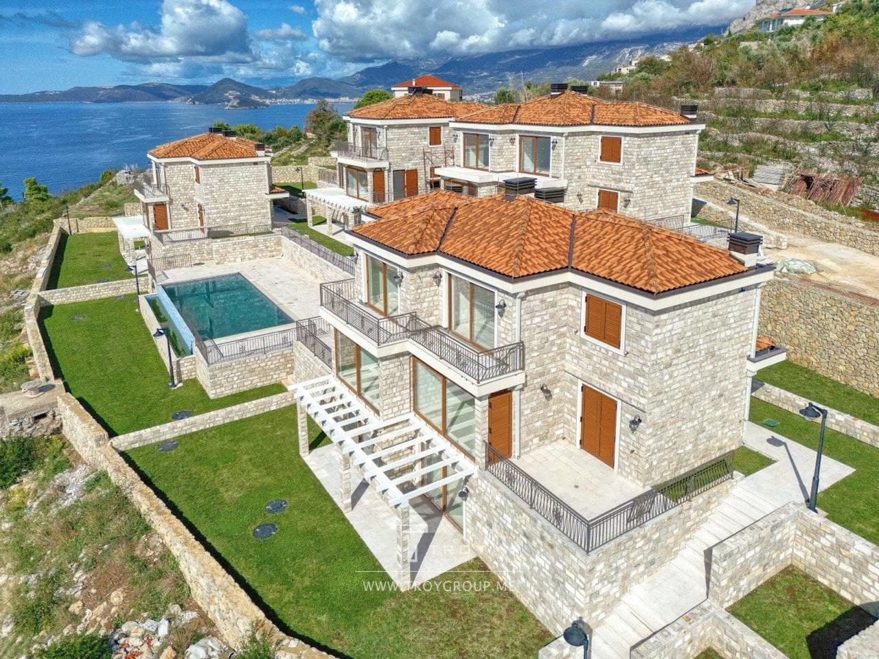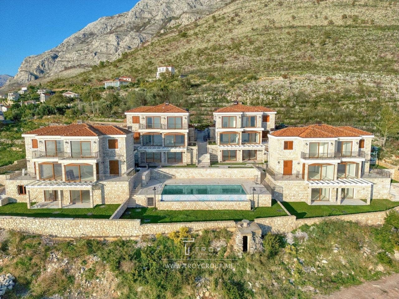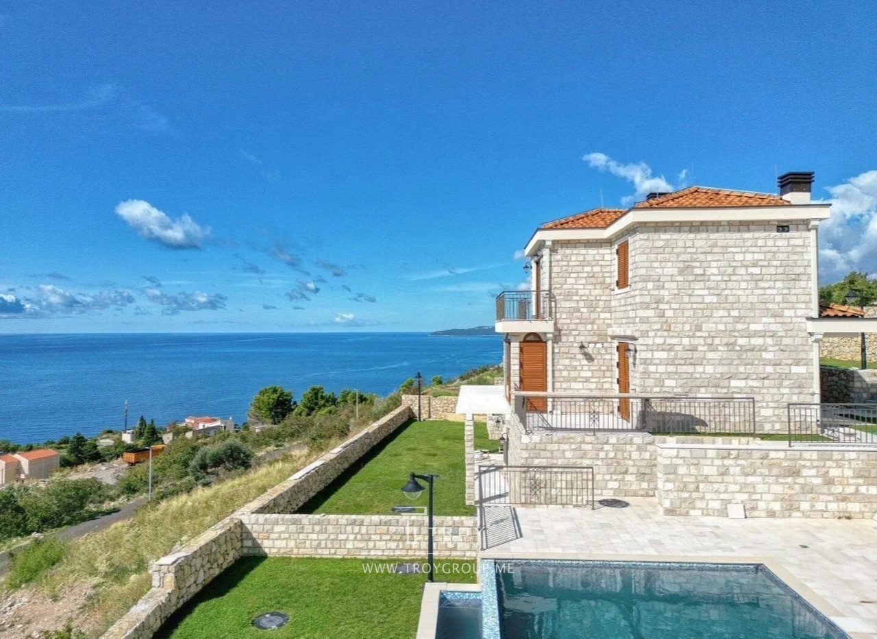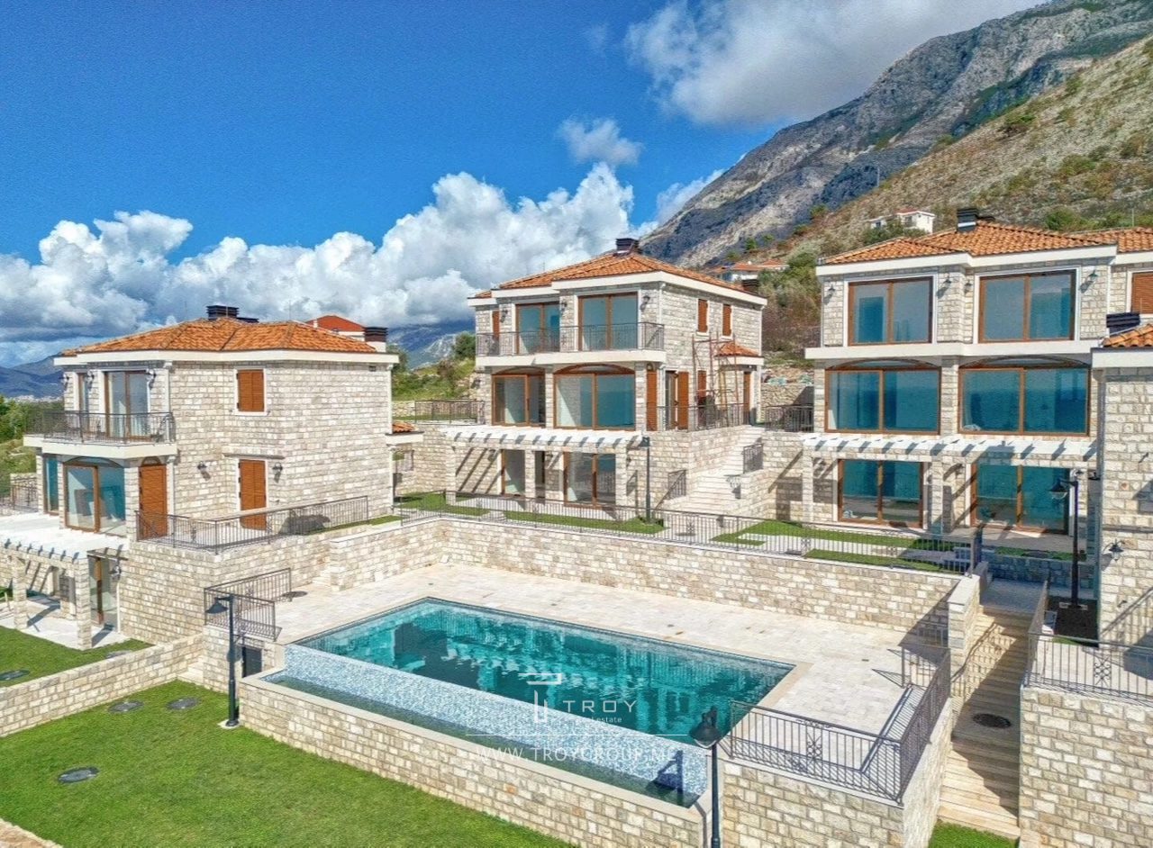 Таунхаус в комплексе с бассейном с панорамным видом на море в Rezevici (Budva).