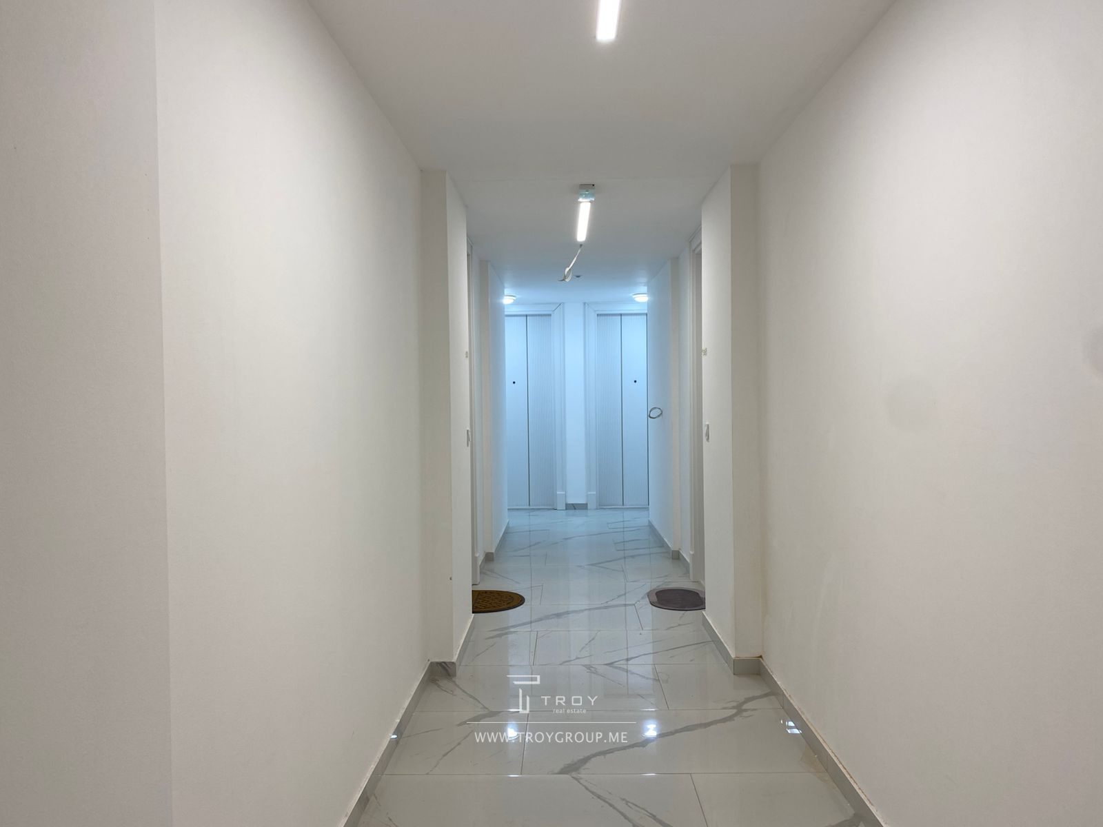 В квартире выполнена отделка, оборудована ванная комната, установлен кондиционер и тёплый пол.